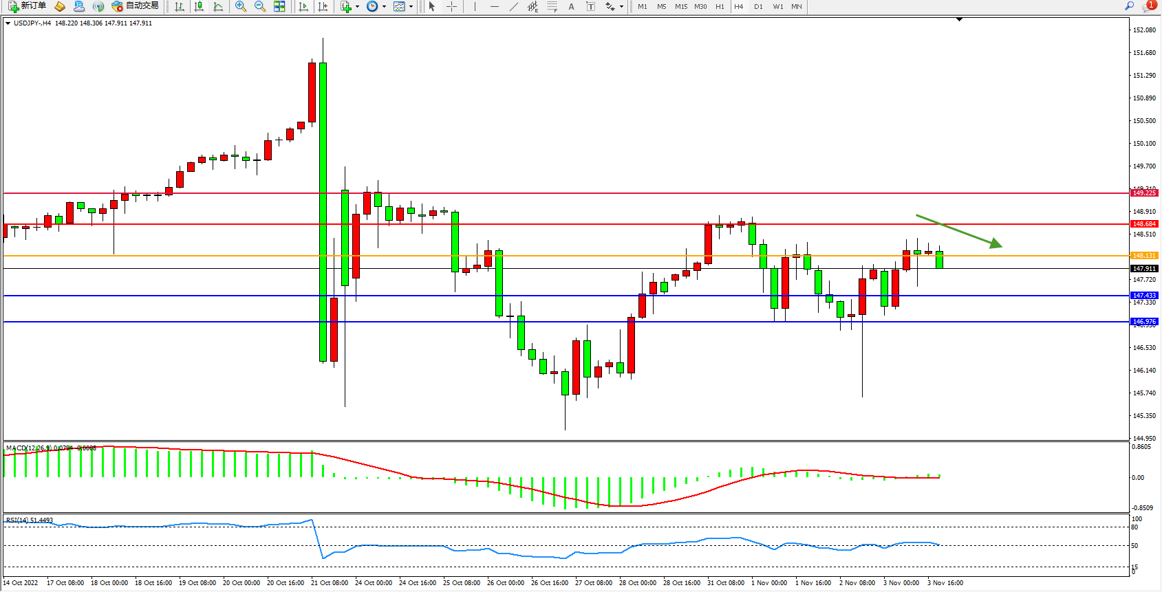 美元兑日圆维持147.911附近震荡,在美联储收紧货币政策以及日本央行宽松货币政策鲜明对比下,美元/日圆大幅上行,在货币政策差异这一根本驱动因素持续作用下,美元/日圆走势上仍以看涨为主,只是要提防日本央行的干预。