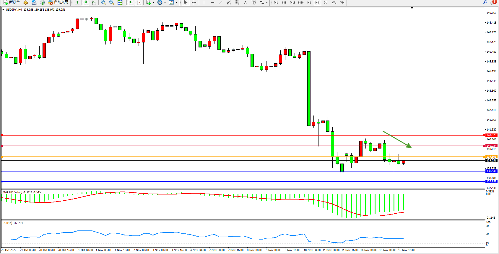 美元兑日圆维持139.251附近震荡,日本官方数据显示,7-9月国内生产总值(GDP)环比年率为下降1.2%,而预估中值为增长1.1%,第二季增速上修为4.6%。第三季GDP较前季下滑0.3%,分析师原预测增长0.3%。除了全球增长放缓和乌克兰战争带来压力之外,日本一直在应对日元兑美元跌至32年低点的挑战,这进一步抬高了从燃料到食品各类商品的价格,放大了生活成本的压力。