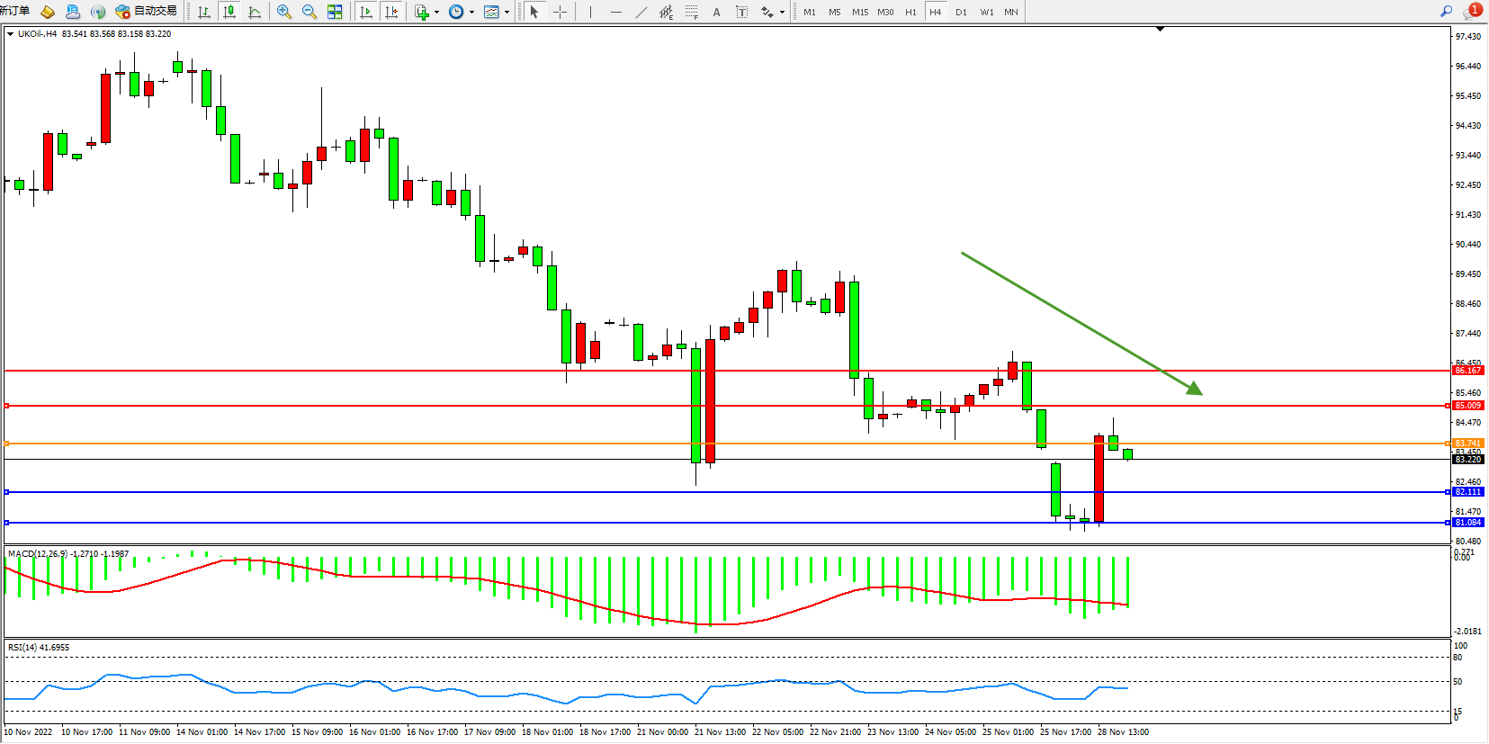 布油UKOil——4小时K线图显示: