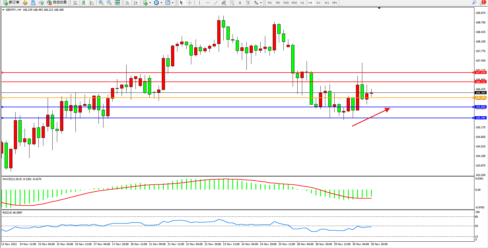 4小时图看:短期窄幅震荡上移,市场多头动力开始缓慢涌现,整体看涨情绪不断升温,MACD指标处于空头区域整理,RSI指标处于50均衡线下侧弱势徘徊;