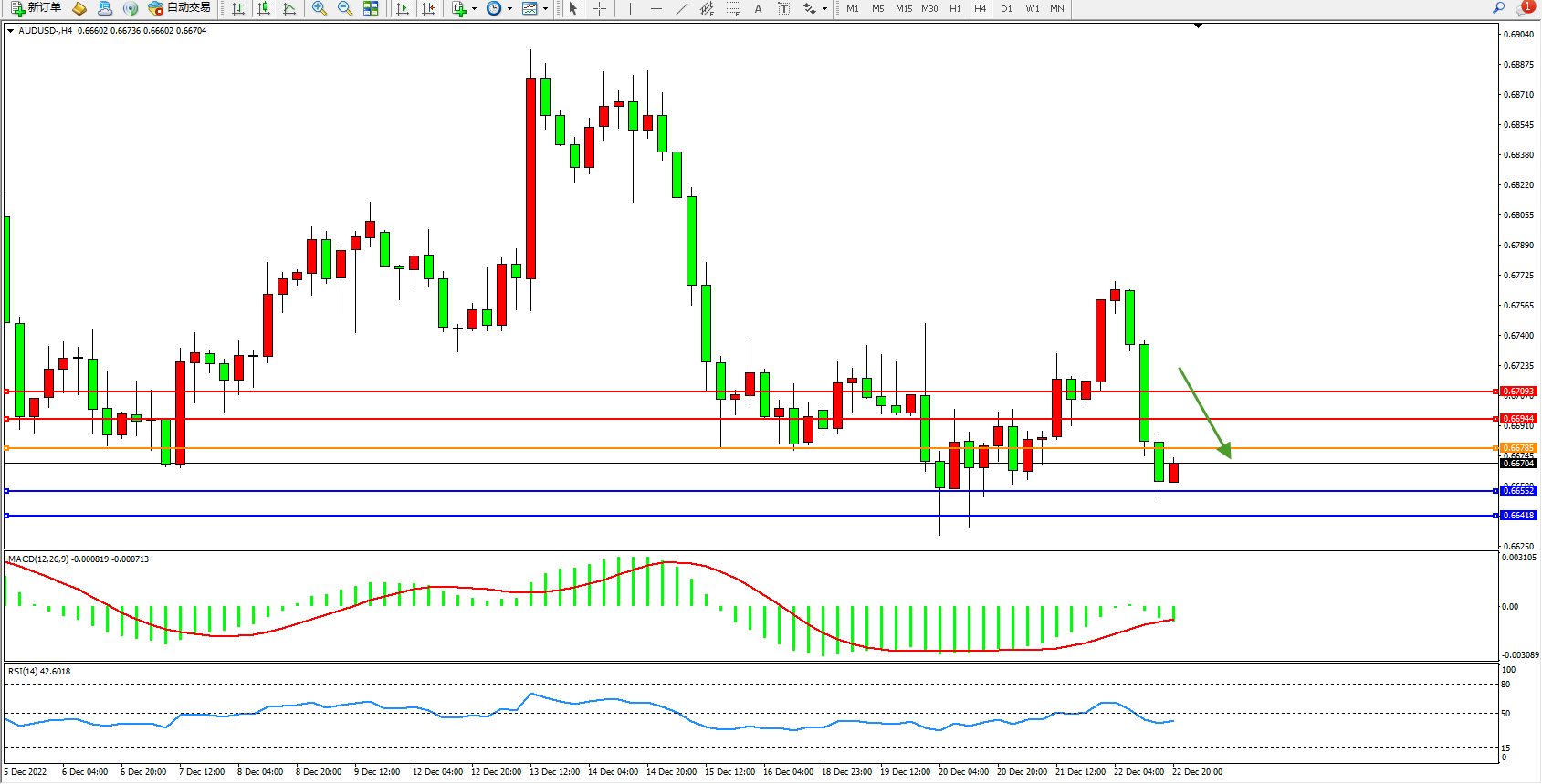 交易策略:0.66785下方看跌,目标0.66553、0.66418
