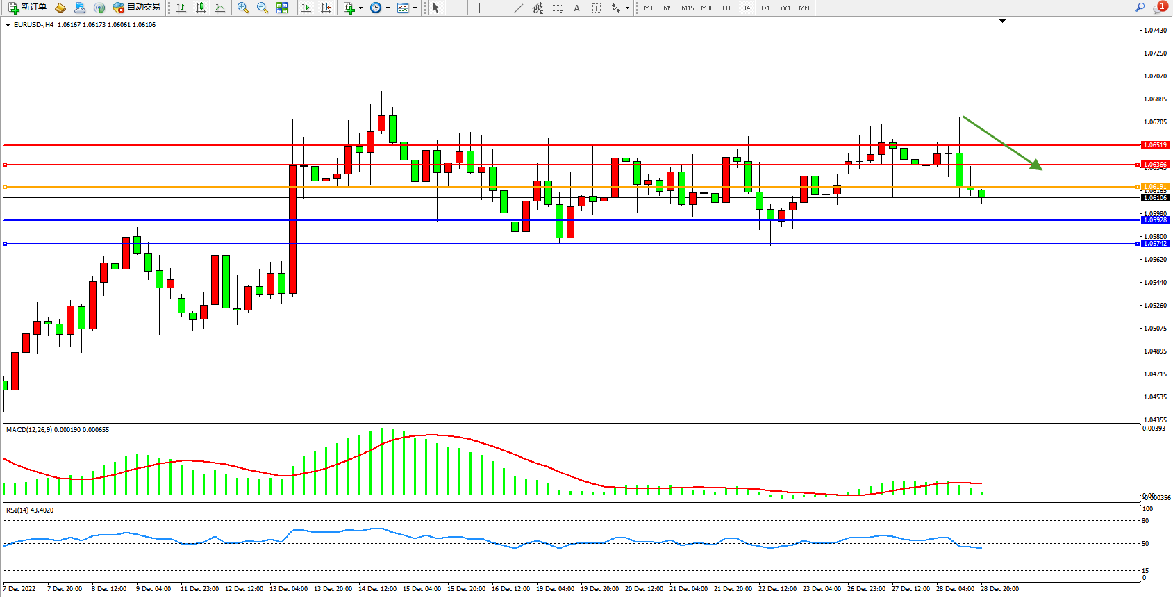 交易策略:1.06191下方看跌,目标1.05928、1.05742