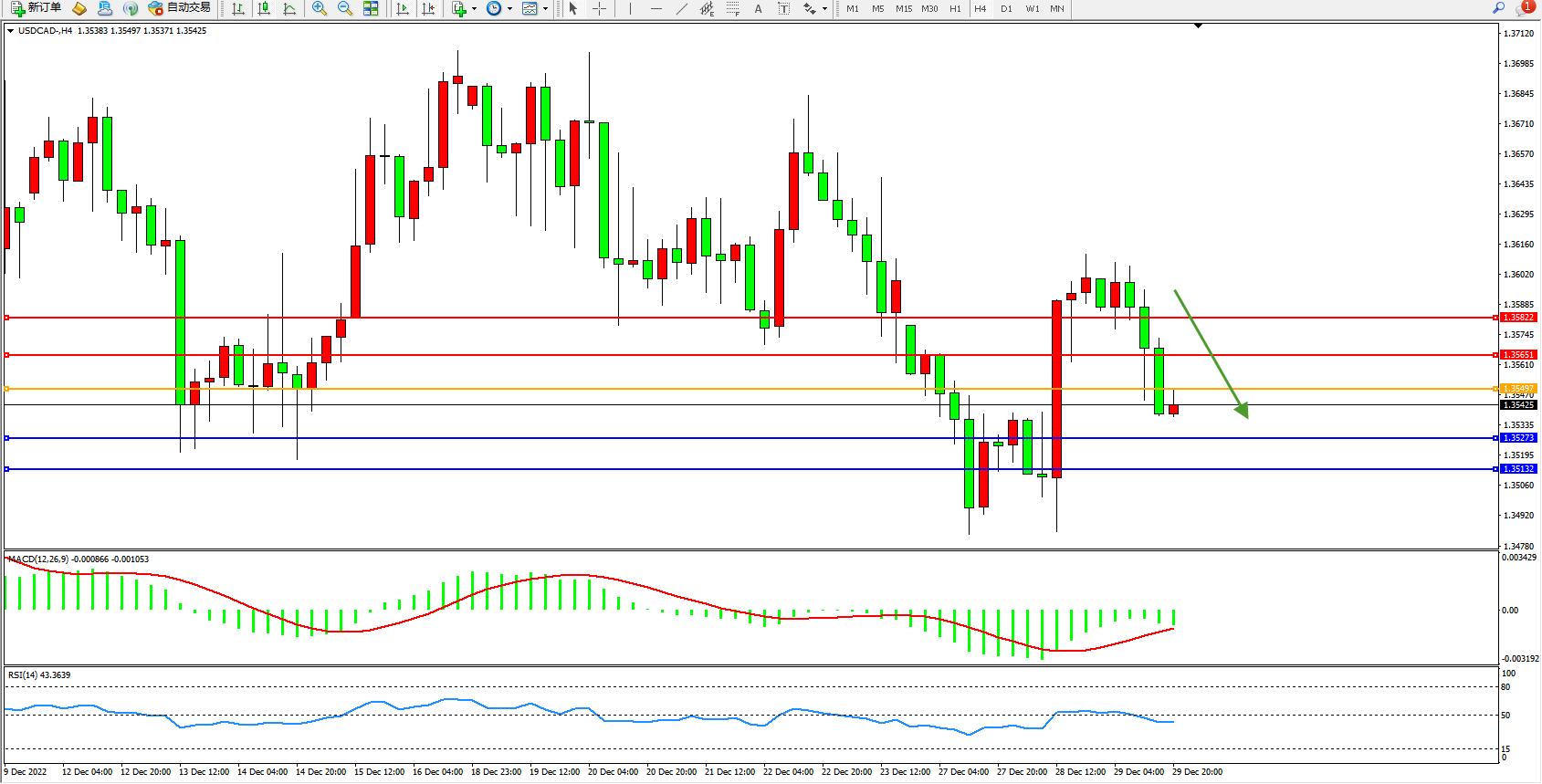 美元兑加元维持1.35425附近震荡,进入2023年,油价有反弹机会,但仍将取决于市场参与者是否继续权衡央行收紧政策作为增长风险定价。由于美联储试图在劳动力市场吃紧的情况下抑制通胀上涨,石油市场也受到美国未来加息预期的打击。