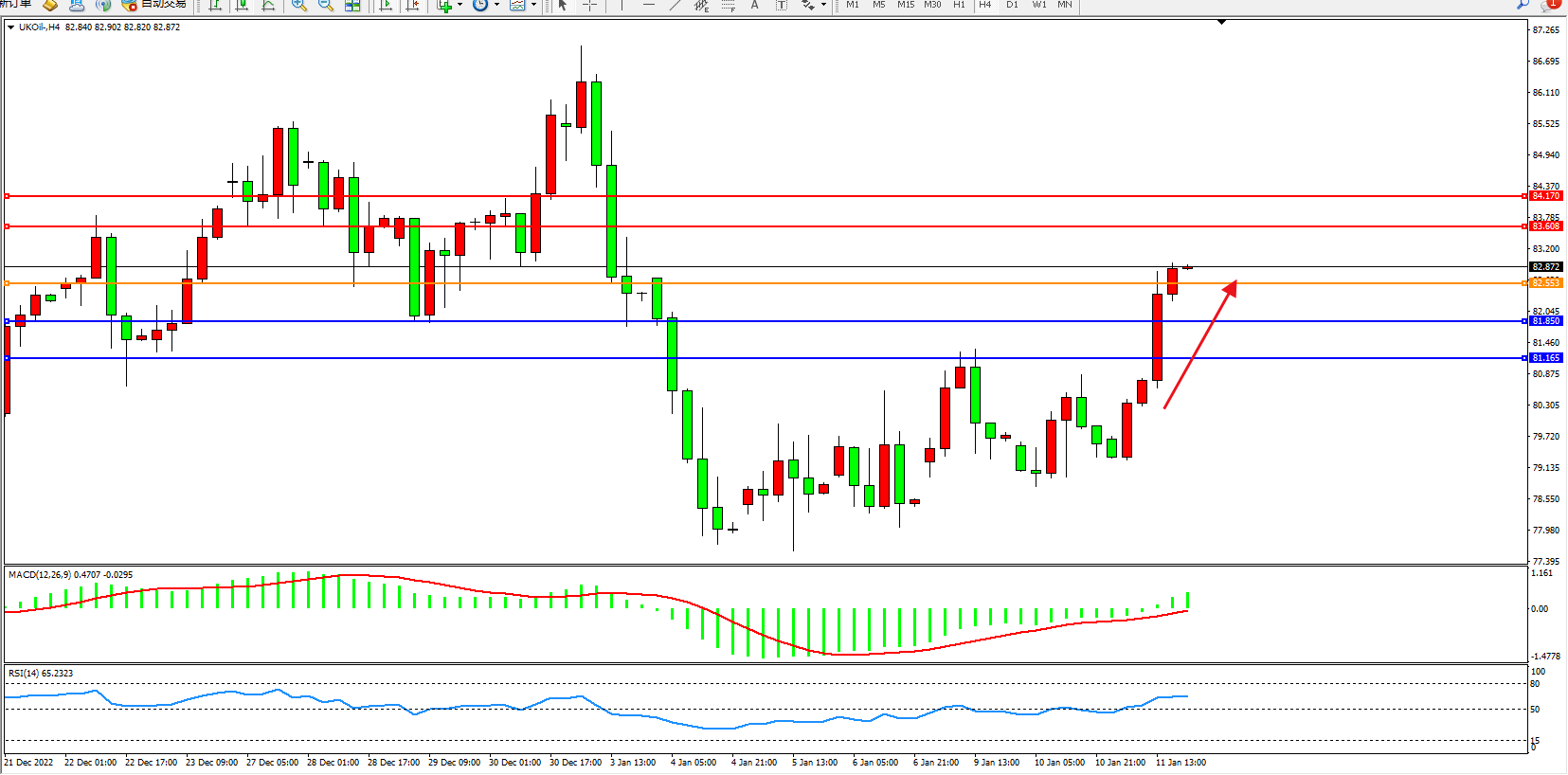 布油UKOil——4小时K线图显示: