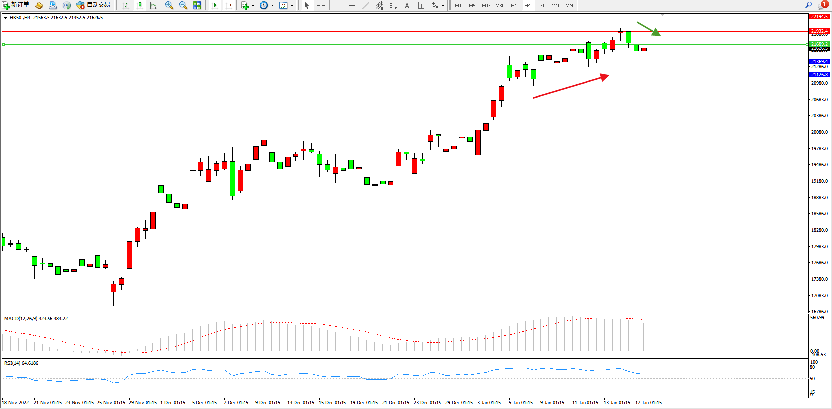 恒指HK50 4小时图