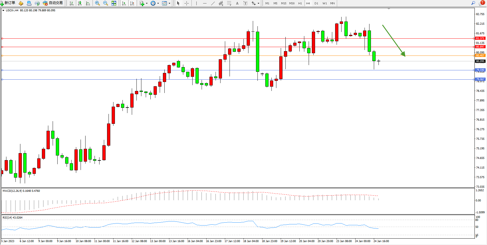 备选策略:80.407上方看涨,目标80.897、81.371