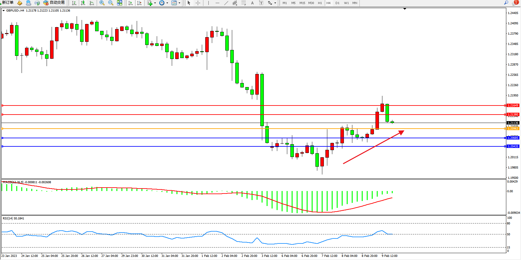 交易策略:1.20963上方看涨,目标1.21380、1.21649