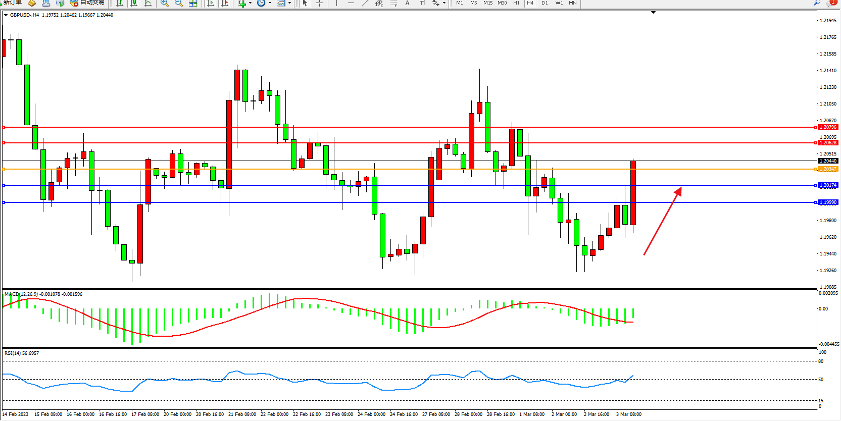 交易策略:1.20347上方看涨,目标1.20628  1.20796