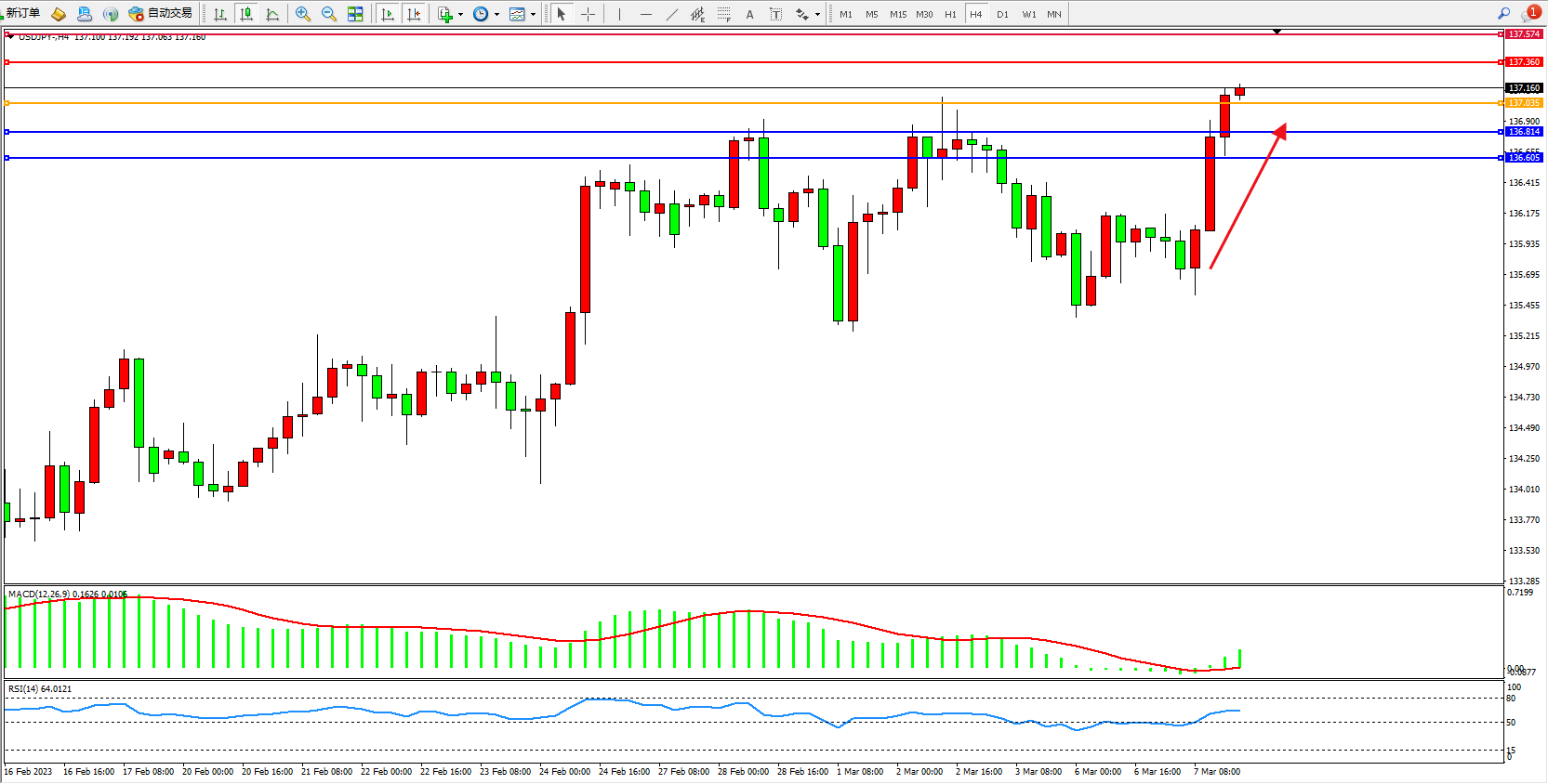 阻力位:137.360  137.574
