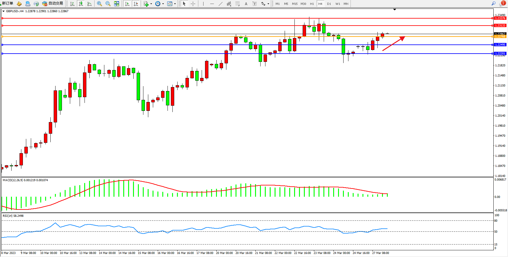 交易策略:1.22867上方看涨,目标1.23133 1.23376