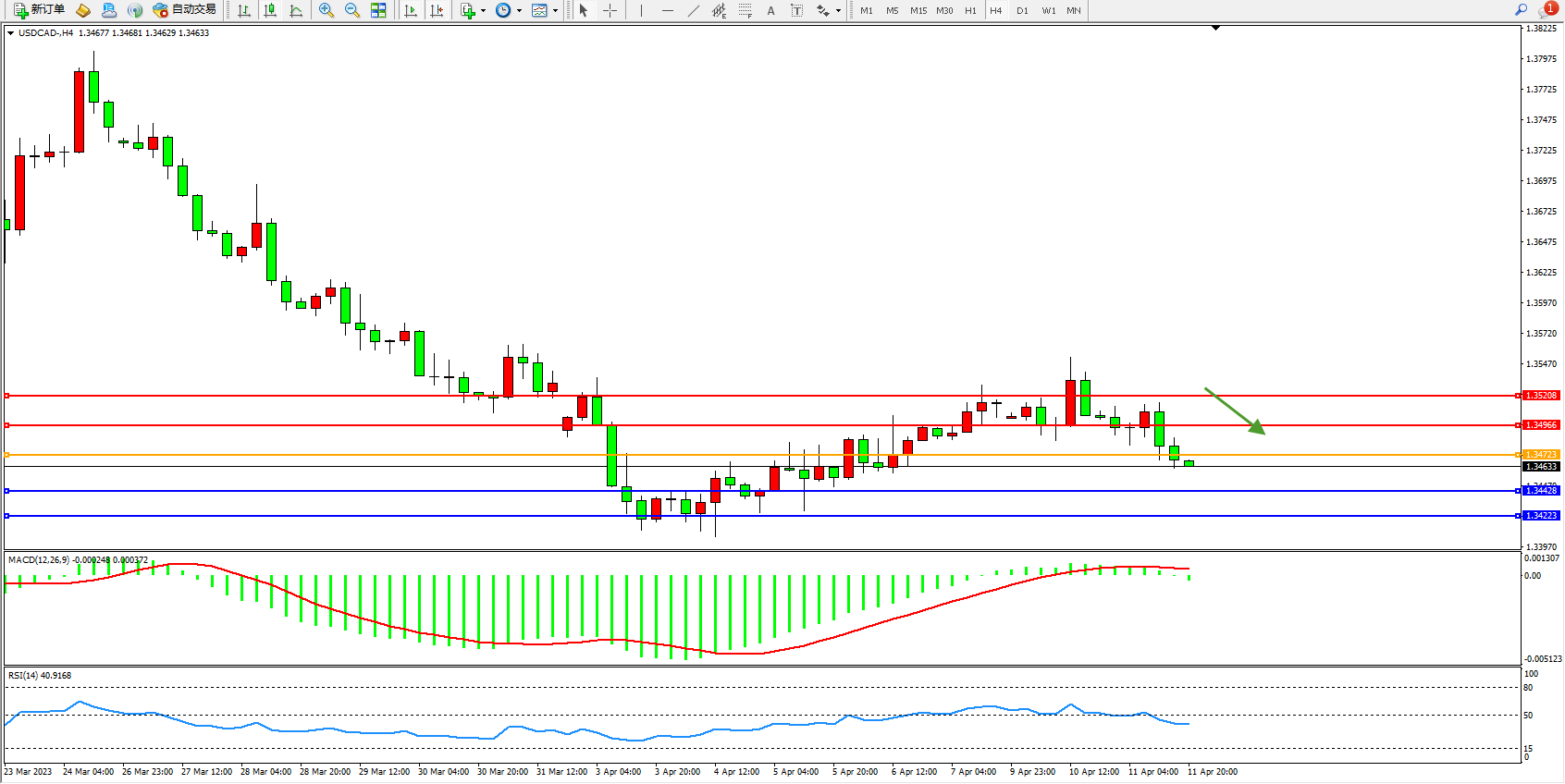 4小时图看:低位空头动力维持震荡下移,短期空头情绪逐渐涌现,市场整体再度偏空头,MACD指标处于0轴线附近弱势徘徊,RSI指标处于50均衡线下侧整理;