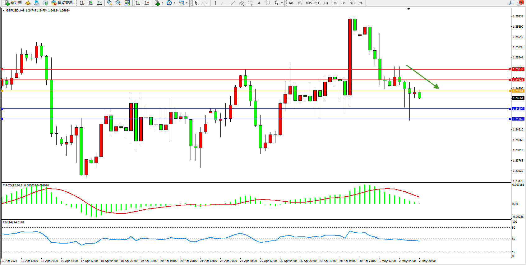 交易策略:1.24761下方看跌,目标1.24507  1.24360