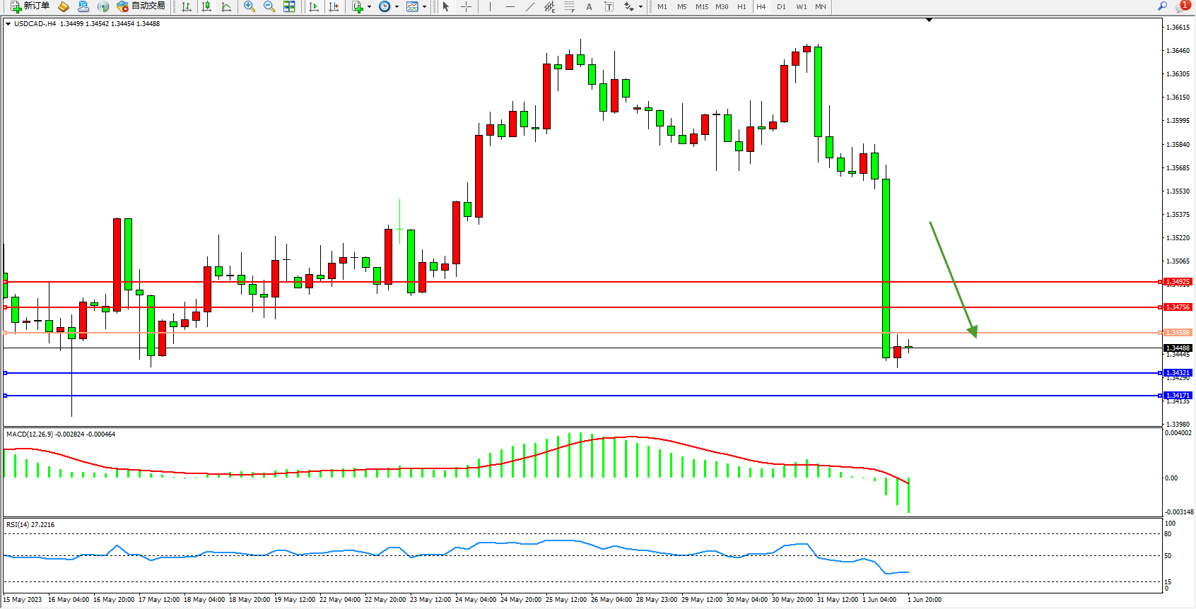 美元兑加元维持1..34588附近震荡,加拿大昨日公布的GDP数据显示,该国经济仍保持强劲势头。第一季度GDP强于预期(也远高于加拿大央行预期)。月度数据显示,3月份的经济活动表现好于预期,有初步迹象表明,4月份的经济活动将表现不错。