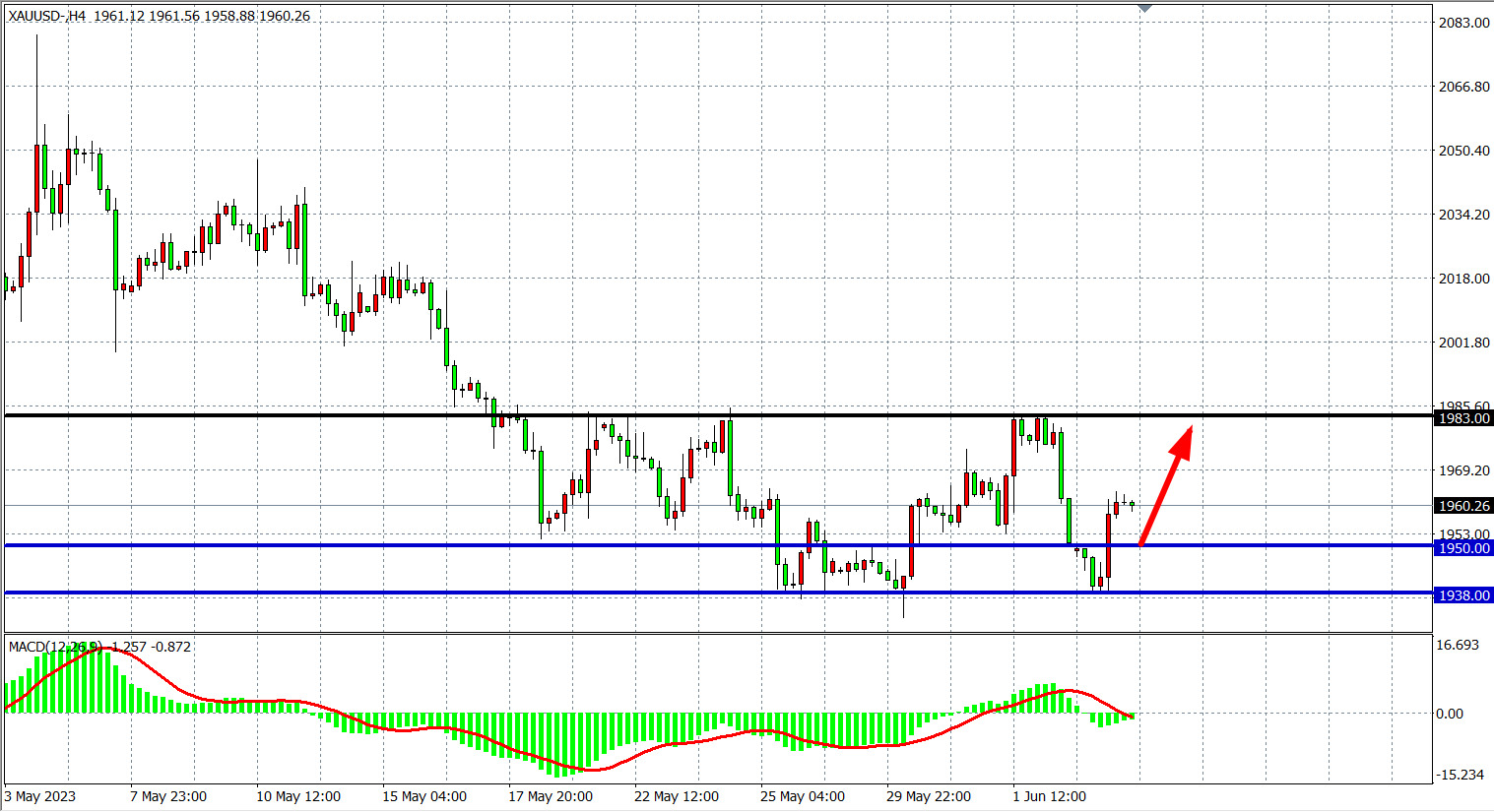周一(6月5日)公布的美国5月ISM服务业指数意外跌至50.3,处于略微扩张状态,4月工厂订单表现同样不太乐观,数据公布后美元指数、美债收益率双双转跌,现货黄金得到提振,日内涨近30美元,收涨0.7%。展望后市,非制造业指标有望减轻美联储继续加息的压力,同时也加剧了市场对美国经济放缓甚至衰退的担忧,金价有望摆脱跌势。