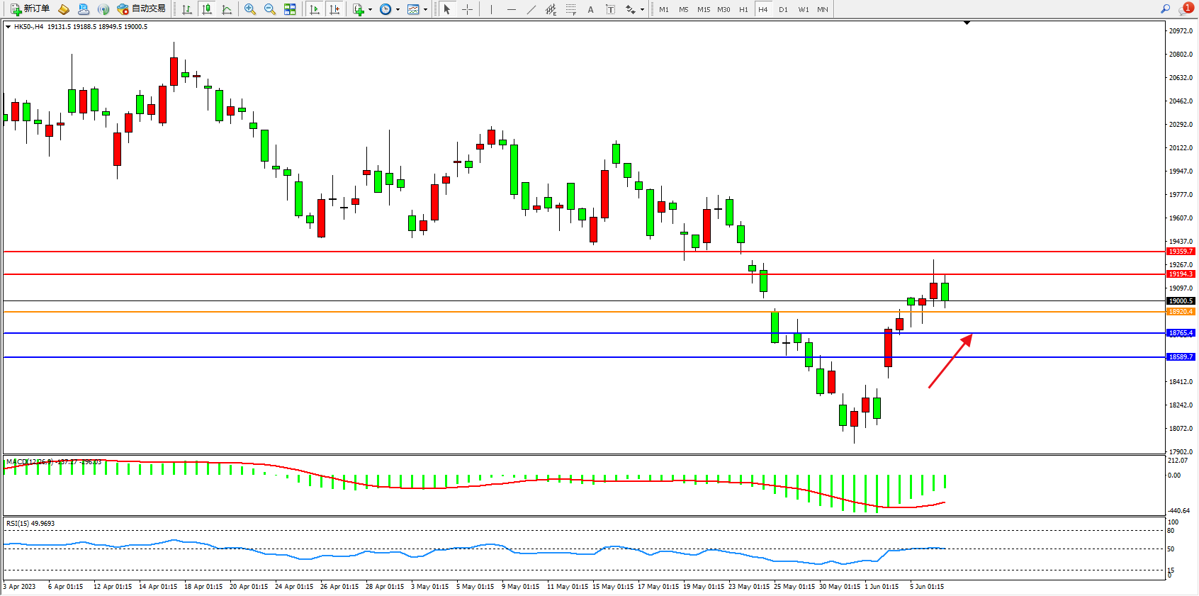 4小时图看:多头动力维持震荡上移,市场看涨情绪持续,短期有继续向上移动迹象,MACD指标处于空头区域震荡上移,RSI指标处于50均衡线附近弱势徘徊;