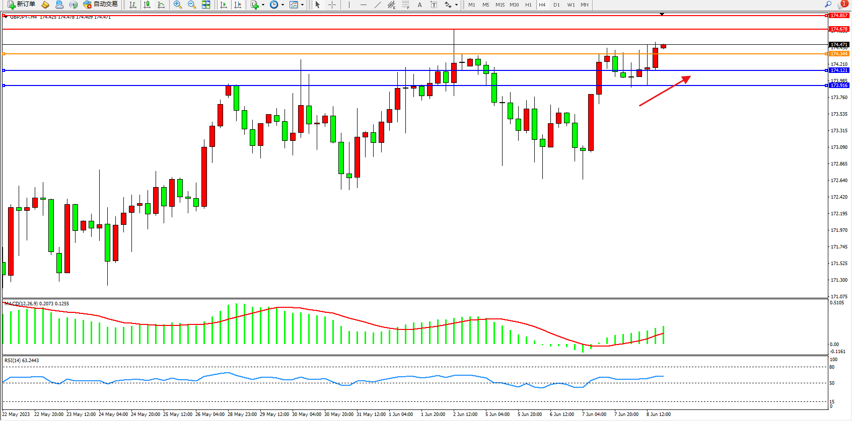 阻力位:174.678  174.857