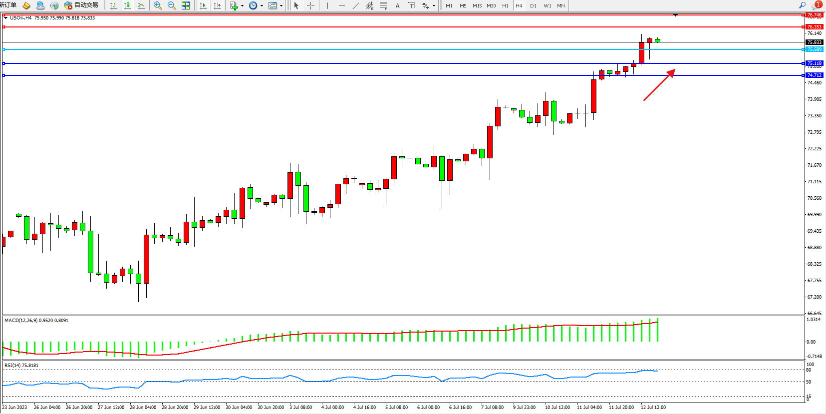 原油维持75.833附近震荡,EIA报告:07月07日当周美国除却战略储备的商业原油进口588.0万桶/日,较前一周减少115.8万桶/日,除却战略储备的商业原油库存增加594.6万桶至4.58亿桶,增幅1.31%。