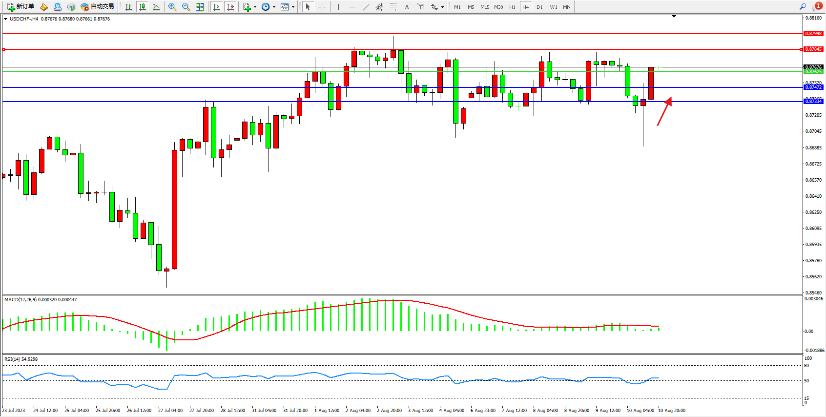 美元兑瑞郎维持0.87676附近震荡,美国7月总体通胀率较6月小幅上升,增强了美联储在9月下一次会议上维持利率稳定的理由。