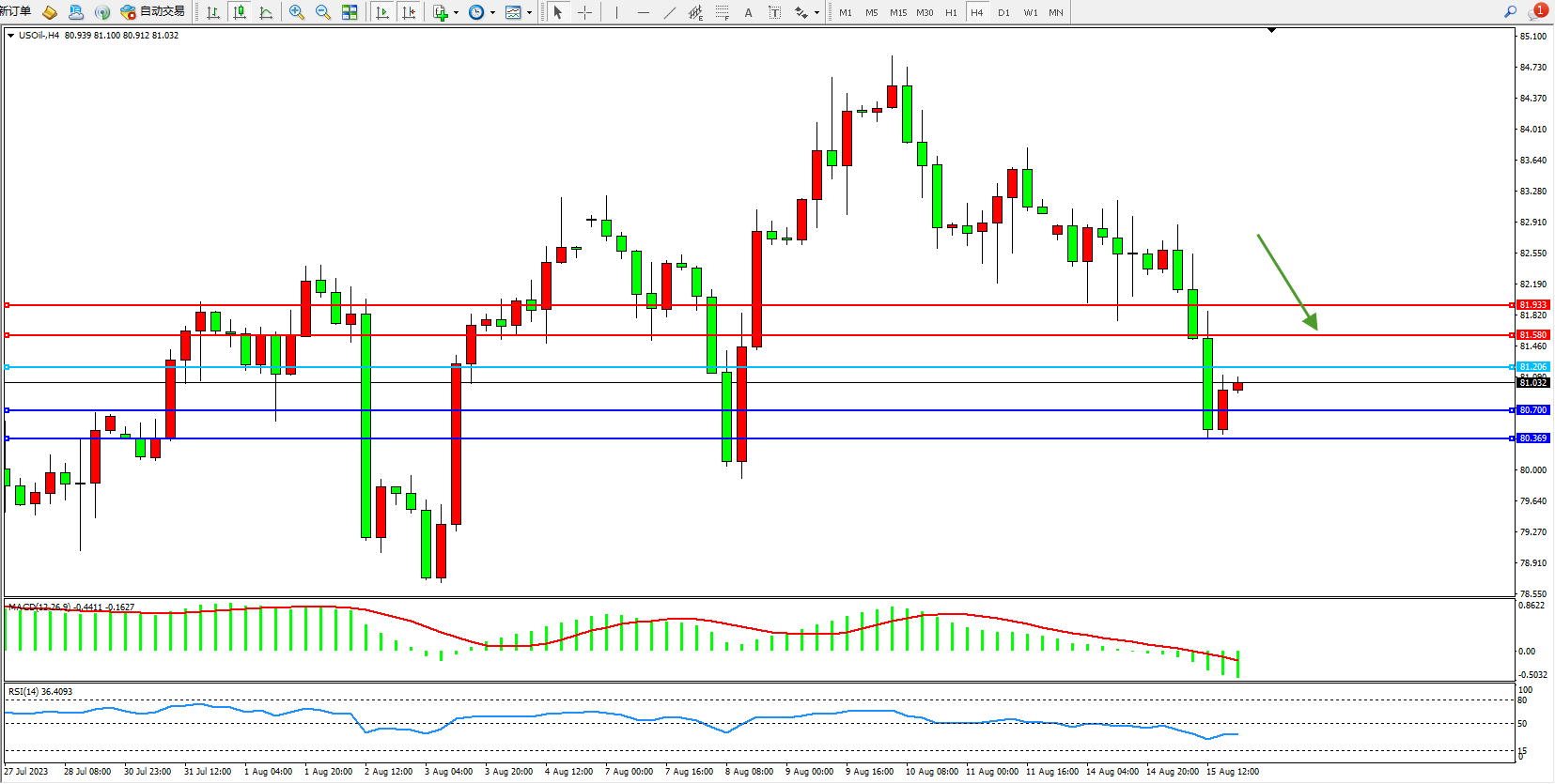 交易策略:81.206下方看跌,目标80.700  80.369