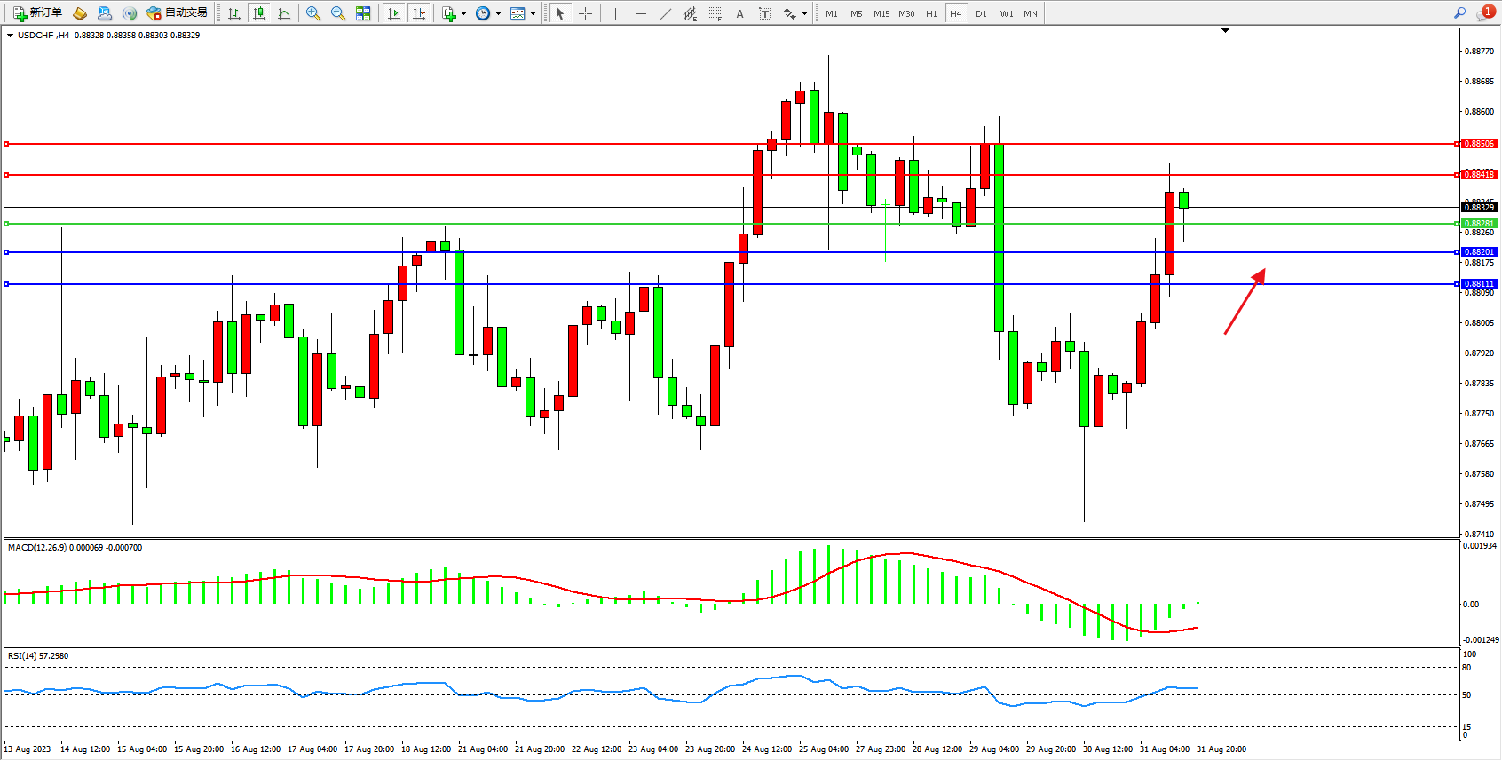 备选策略:0.88281上方看涨,目标0.88201  0.88111
