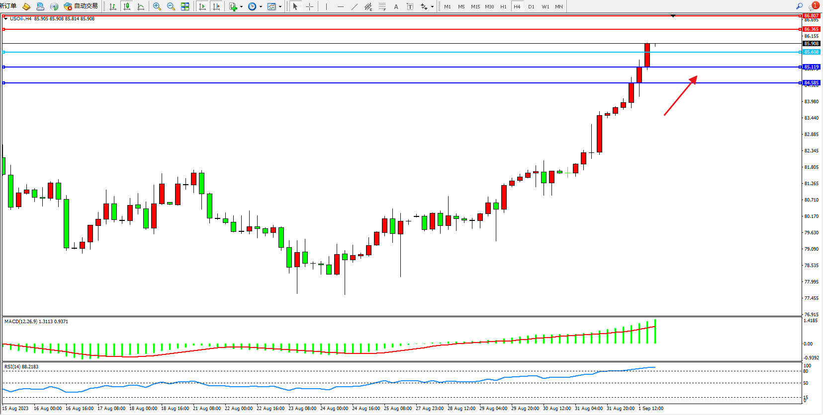 原油维持85.908附近震荡,市场预期欧佩克+将延长减产至年底。沙特阿拉伯将把每天100万桶的自愿减产协议延长至10月,加入欧佩克+及其盟友的减产行动。