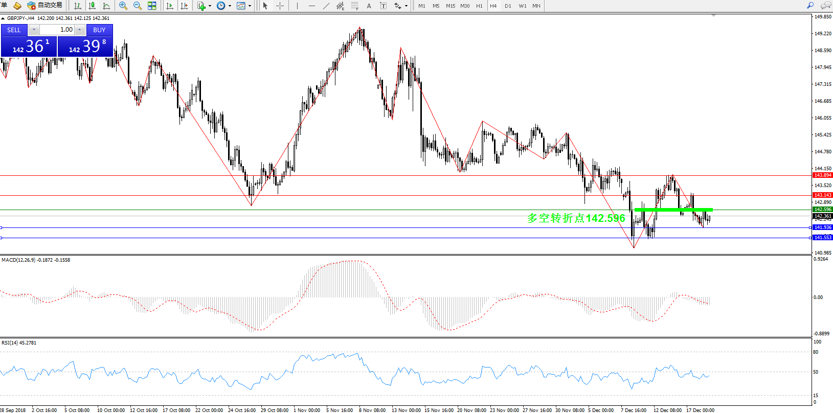 备选策略:142.596下方看跌,目标141.936、141.553