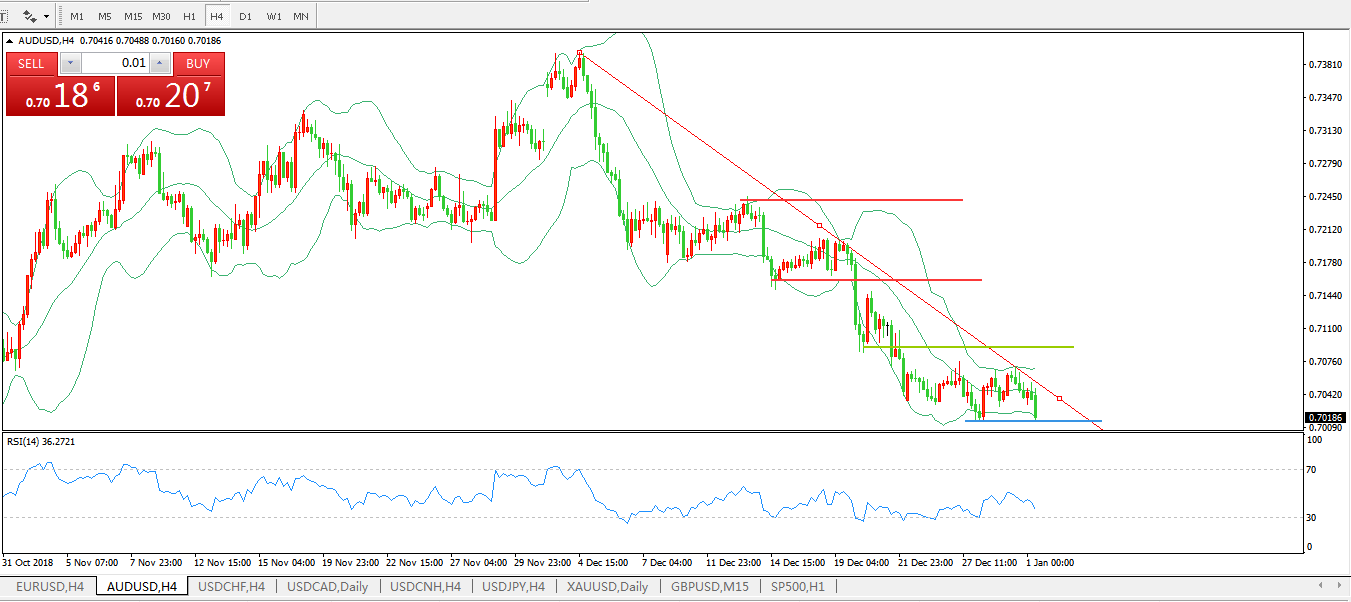 交易策略:在0.7090之下,看跌,目标价位为0.7000,然后为0.6950