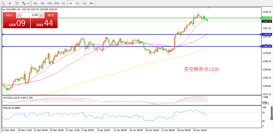 交易策略:在1320.00之上看涨,目标1330.00 1345.00