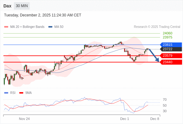 在 23815 之下,看跌,目标价位为 23579 ,然后为 23440 。