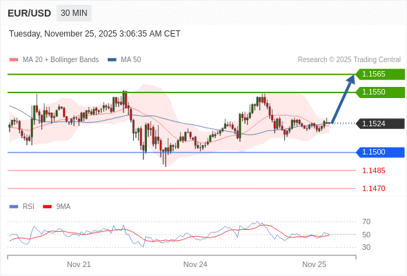 在 1.1500 之上,看涨,目标价位为 1.1550 ,然后为 1.1565 。