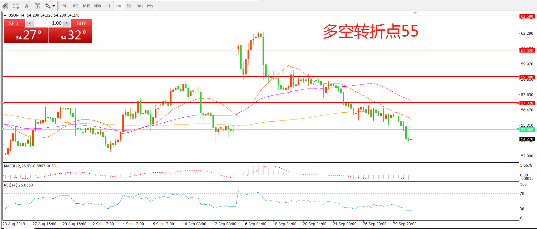 交易策略: 在55.00之下看跌,目标52.50    50.50