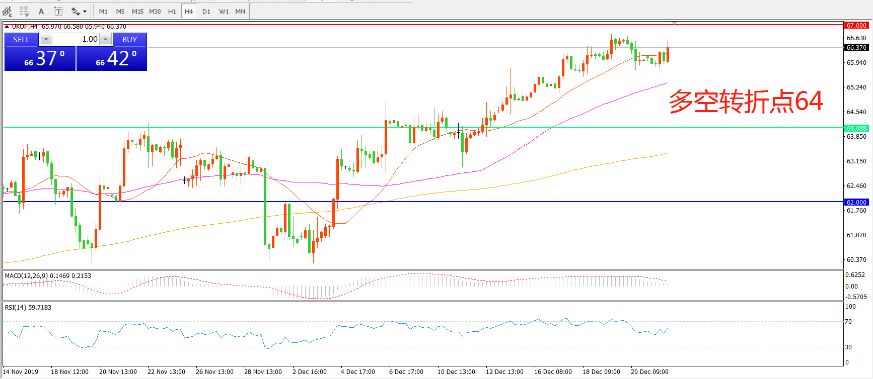 交易策略:在64.00之上看涨,目标67.00 69.50