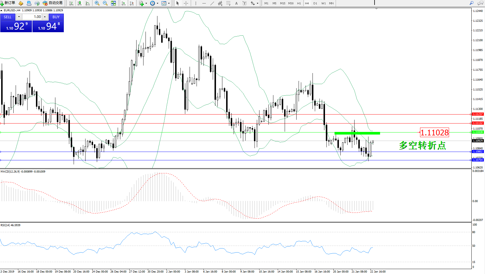 交易策略:1.11028下方看跌,目标1.10802、1.10704