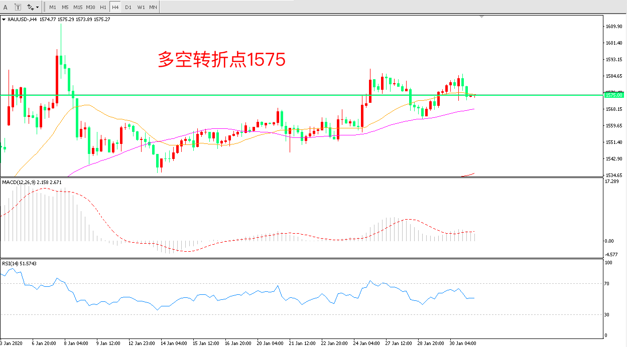备选策略:在1575.00之下看跌,目标1530.00   1500.00