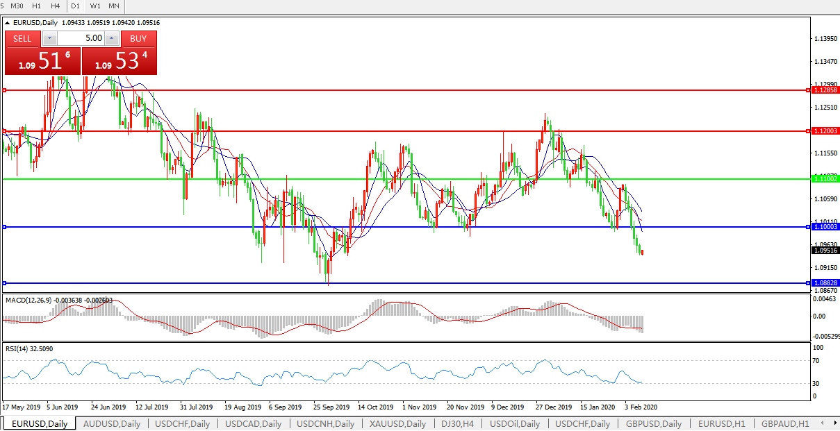 交易策略:1.1100下方看跌,目标1.1000、1.0880