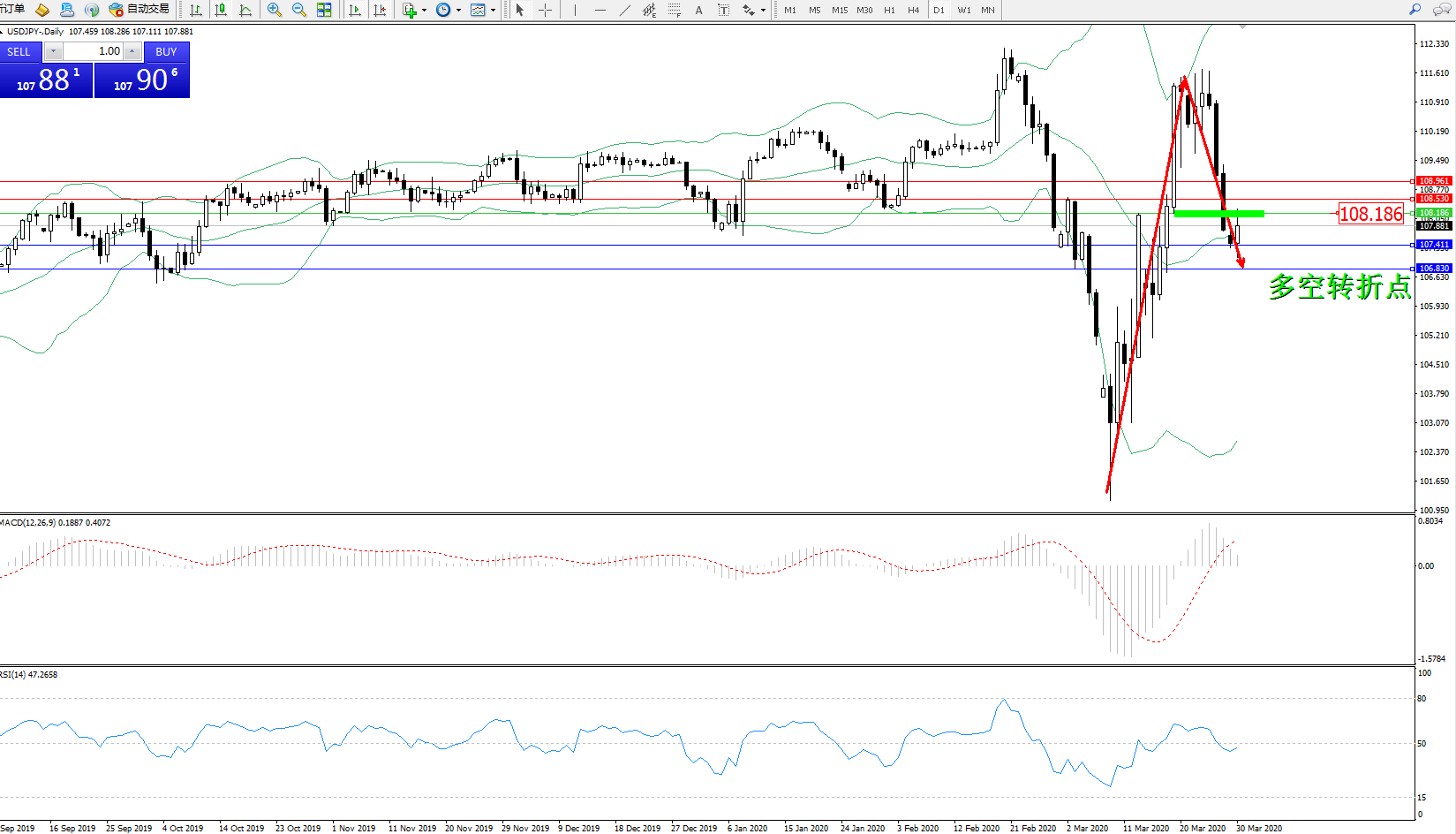 多空转折点:108.186