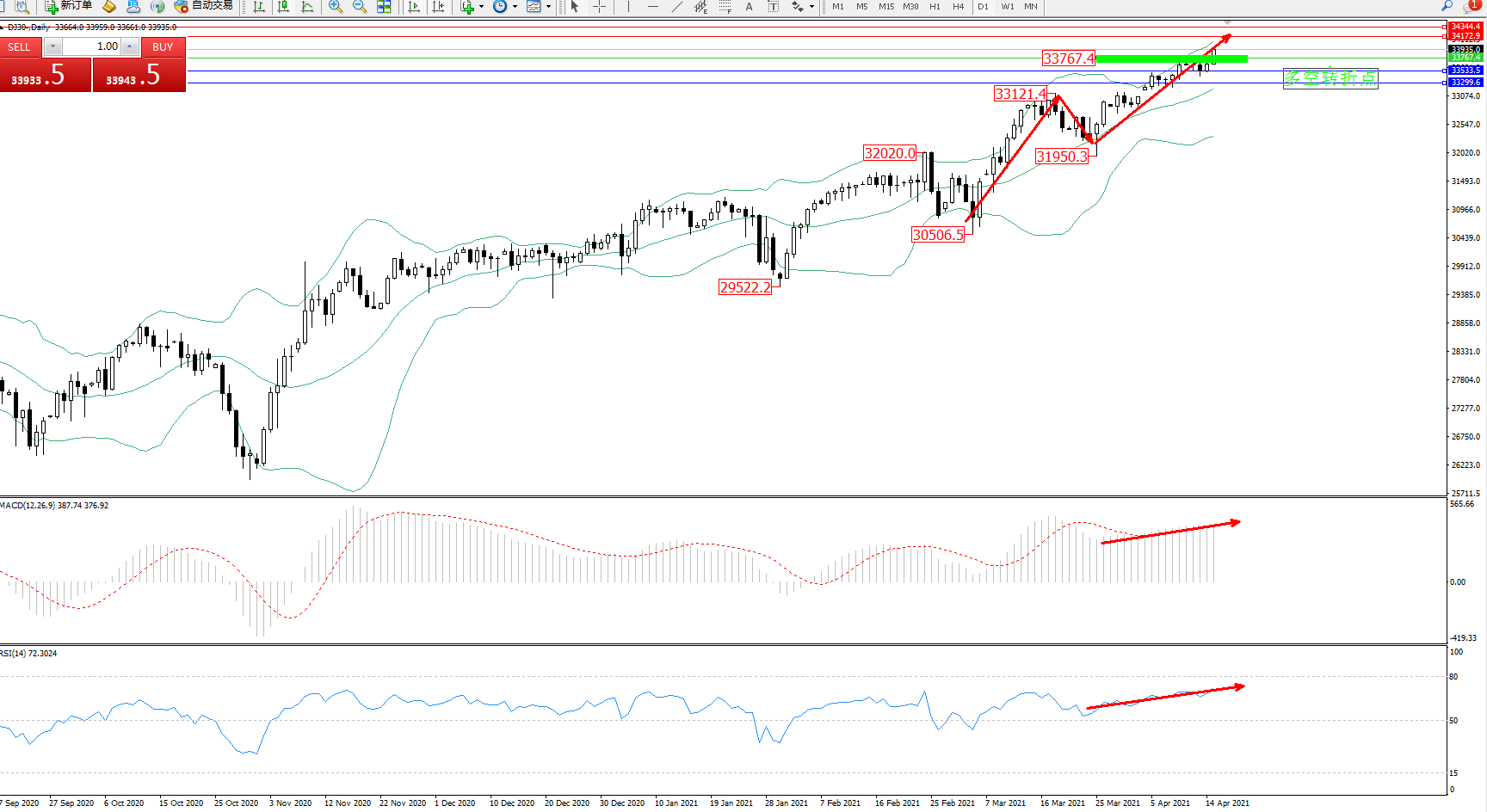 道琼斯指数4月15日(周四)收盘上涨305.16点,涨幅0.90%,报34036.05点;美股收盘,道指续刷新高,美国3月份工业产值增速低于预期,但随着业务重新开张、招聘增加和新一轮刺激支票到帐,美国3月份零售销售创10个月最大增幅,上周初请失业金人数降至2020年3月旬以来最低,在一系列强于预期的美国经济数据公布后,股市冲上纪录高位,美国国债却也加速上涨。0年期和30年期收益率双双跌至过去一个月来最低。交易员和投资者都感到越来越难以从经济角度解释这种走势。