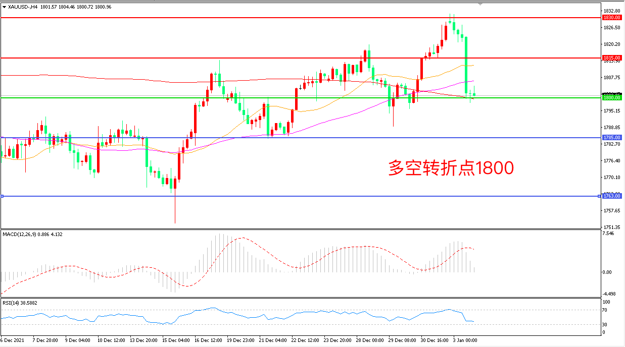 周一(1月3日),鉴于市场预计美联储将转向更快的缩债进程并在2022年加息三次,非农就业报告将成为关键的市场风险事件,谨慎情绪导致金价大幅下挫,收报1800.96美元/盎司。值得注意的是,欧洲部分地区的公共假期导致交易量减少,从而放大了黄金的价格波动,在美联储周四凌晨公布的最新会议纪要和周五公布的美国非农就业数据后,黄金将迎来更明确的方向指引。