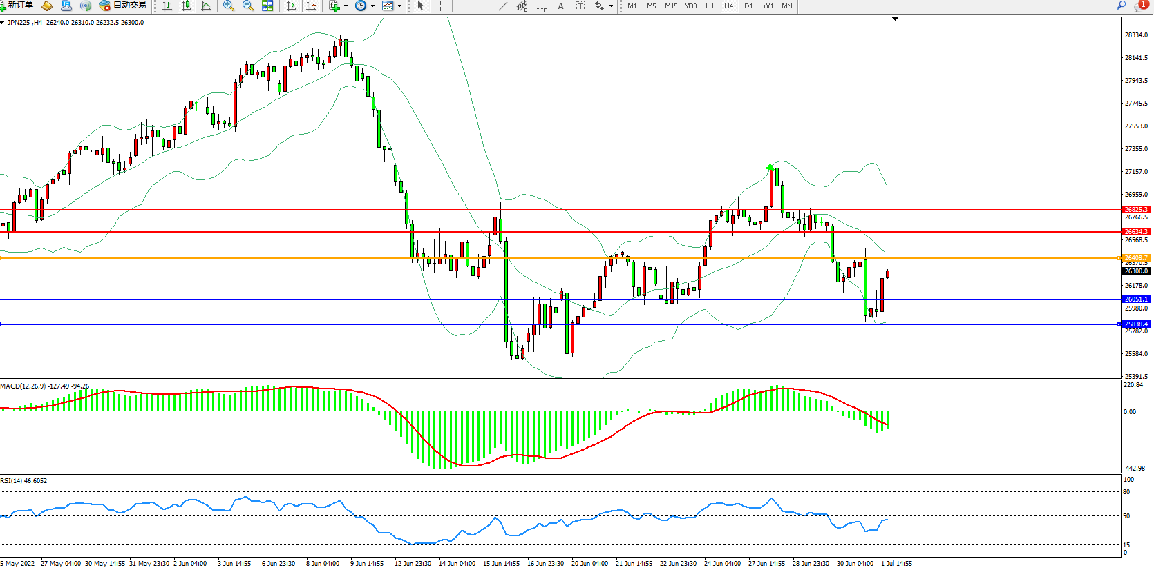 日经225指数7月1日(周五)收盘下跌448.54点,跌幅1.70%,报25944.50点。日本央行数据显示,日本大型制造商的投入成本和产出价格已达到1980年以来的最高水平,且6月份东京CPI较上年同期上涨2.3%。