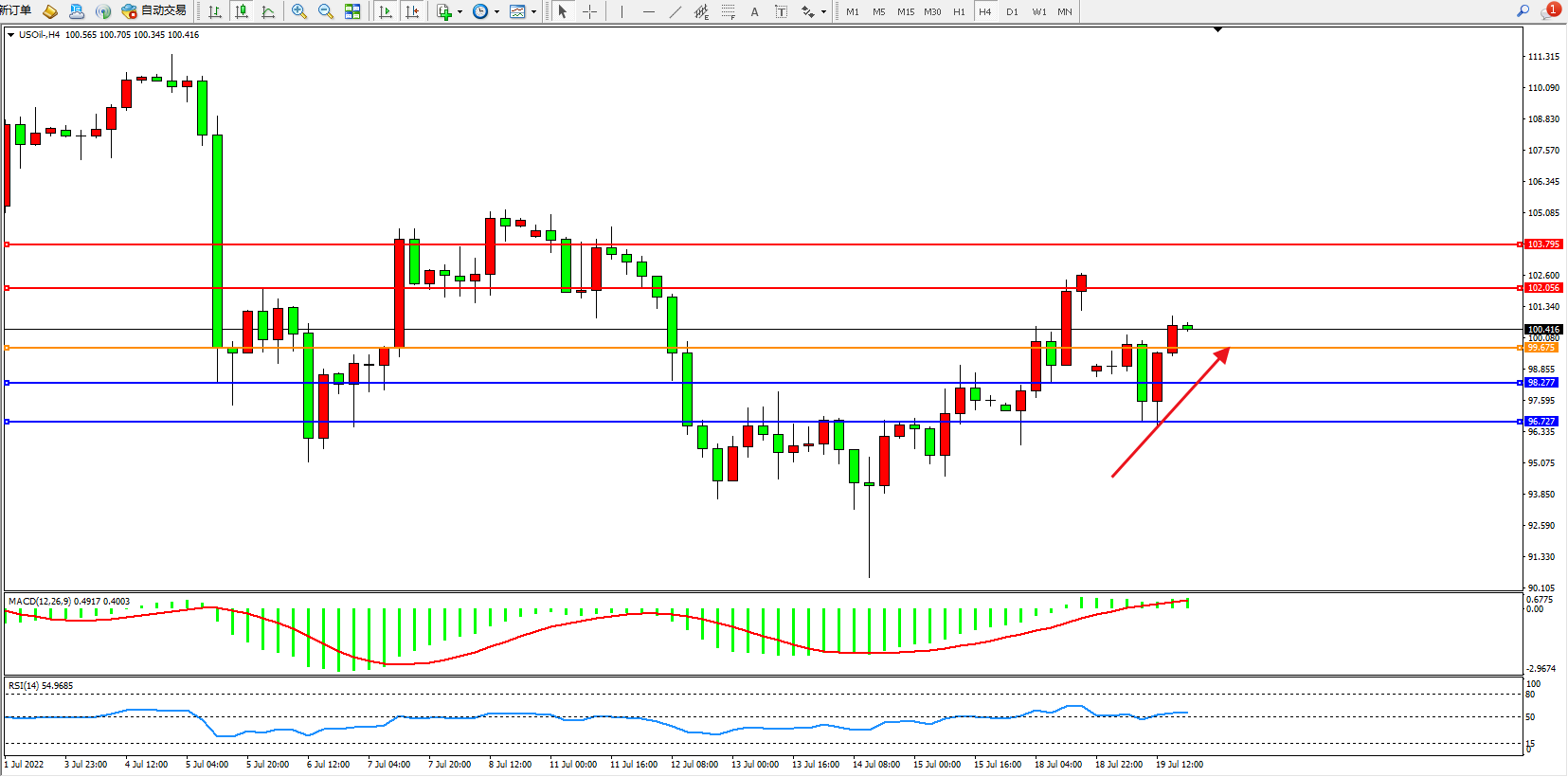 原油USOil——4小时K线图显示: