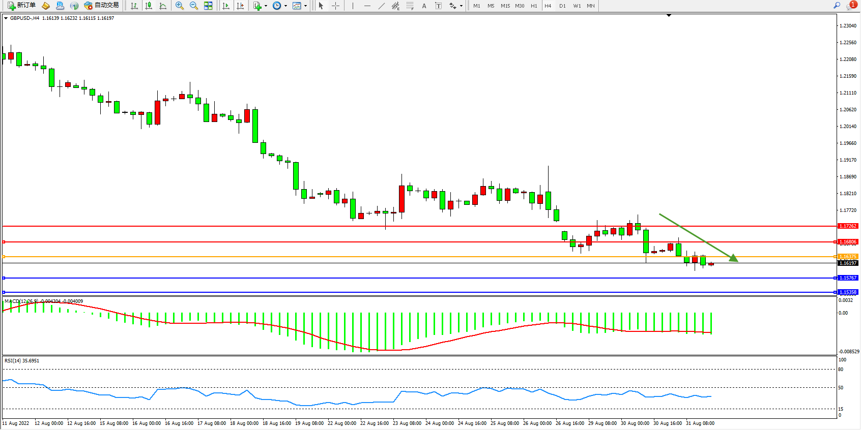 交易策略:1.16375下方看跌,目标1.15767、1.15358