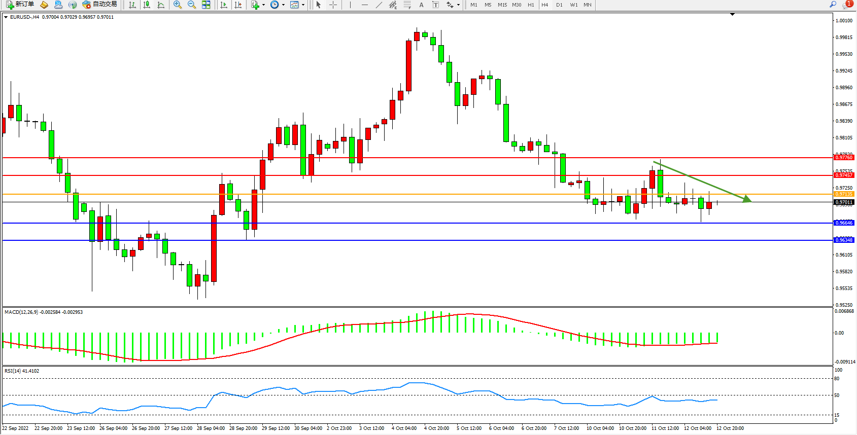 欧元美元EURUSD—4小时K线图显示: