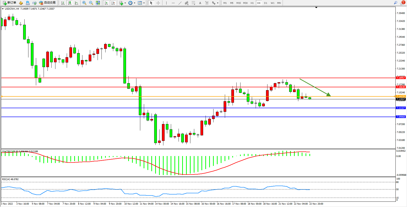 交易策略:7.14239下方看跌,目标7.11327、7.09068