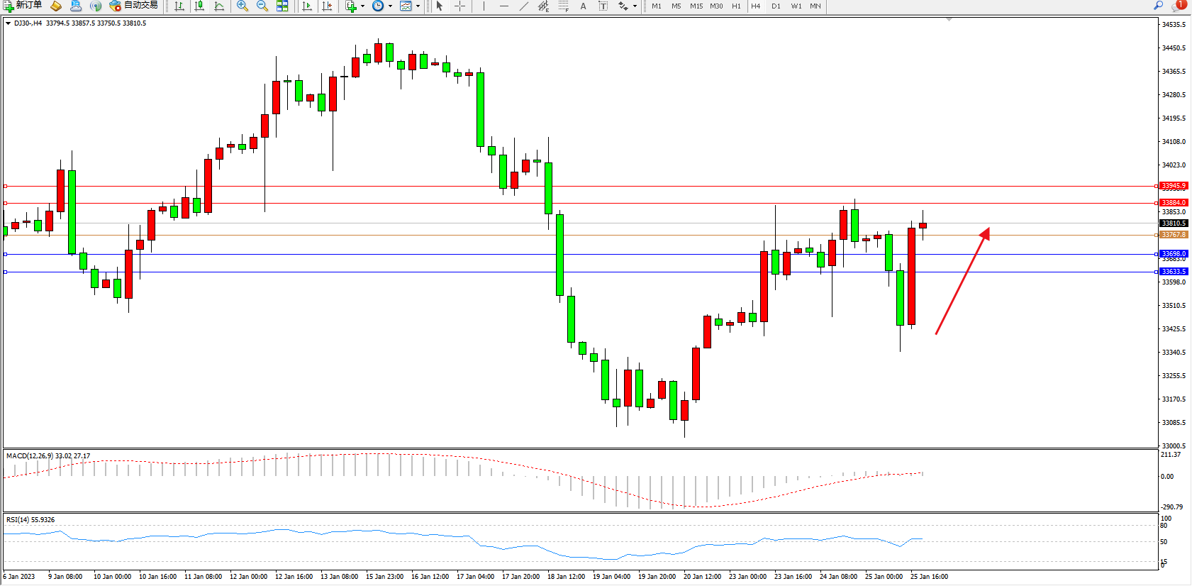 道琼斯指数1月25日(周三)收盘上涨9.95点,涨幅0.03%,报33743.91点;部分投资者在美国第四季度GDP数据公布前平仓,美元指数企稳。华尔街投资者似乎对美联储成功抑制通胀充满信心,但美联储不断强调抗通胀过程艰难且漫长。