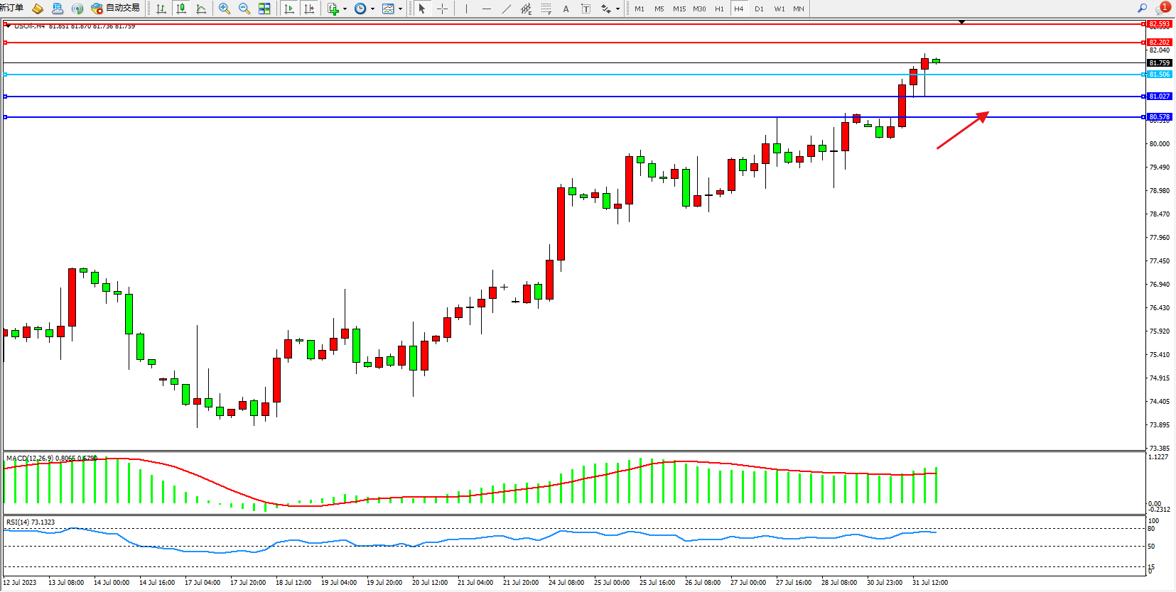 原油维持81.759附近震荡,沙特阿拉伯可能将自愿减产延长至9月份,进一步收紧全球供应,而且市场已经放弃了全球经济增长悲观的情绪。