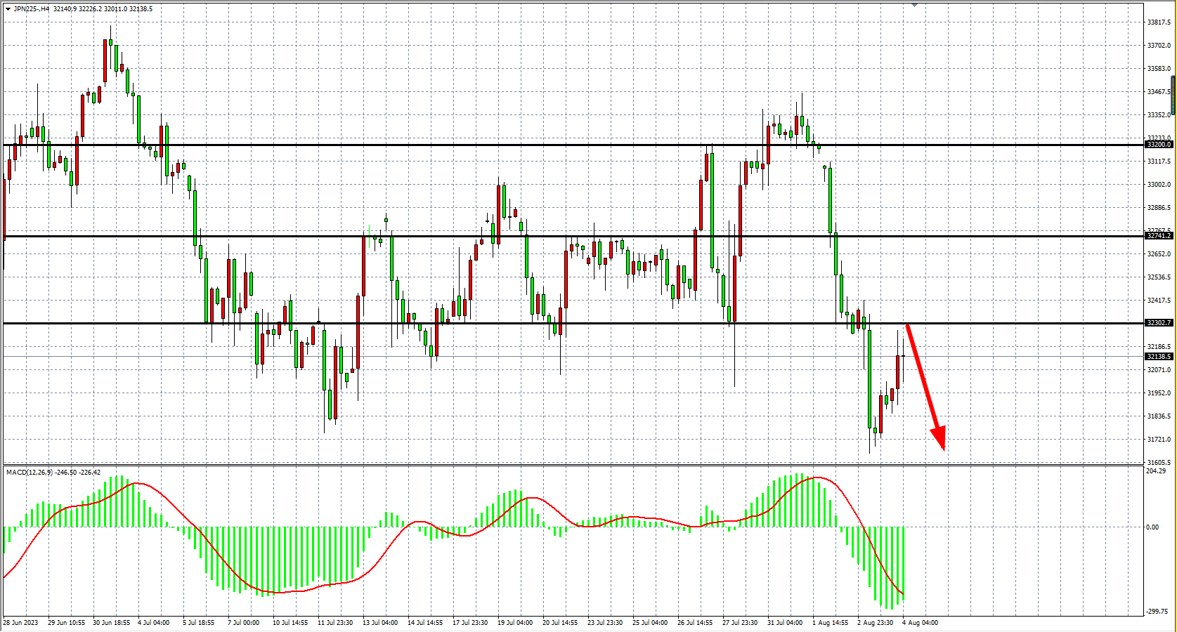 周五(8月4日)日经225指数收盘下跌7.50点,跌幅0.02%,报32172.50点。对美国经济的担忧令市场承压,此前惠誉评级下调美国长期信用评级。