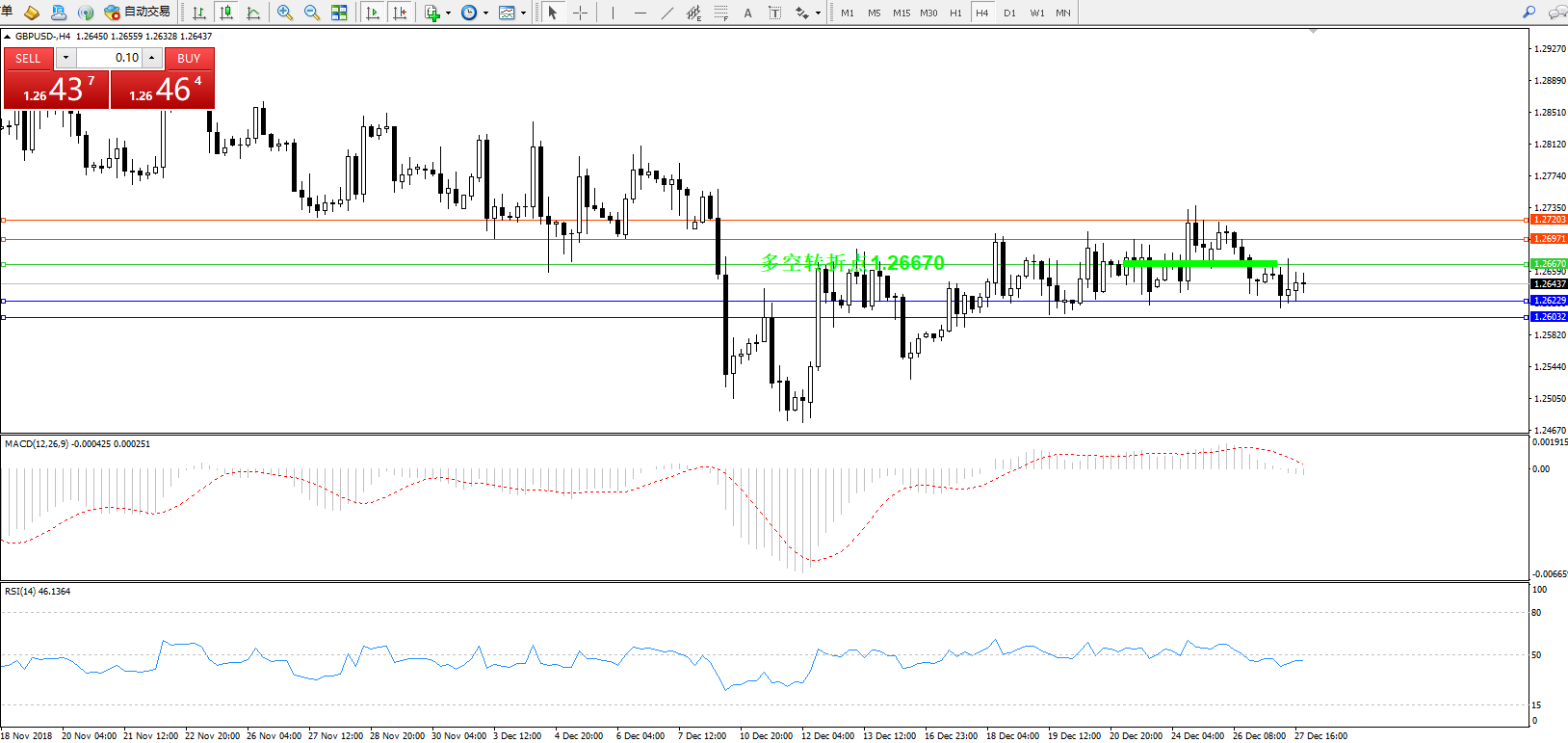 交易策略:1.26670下方看跌,目标1.26229、1.26032