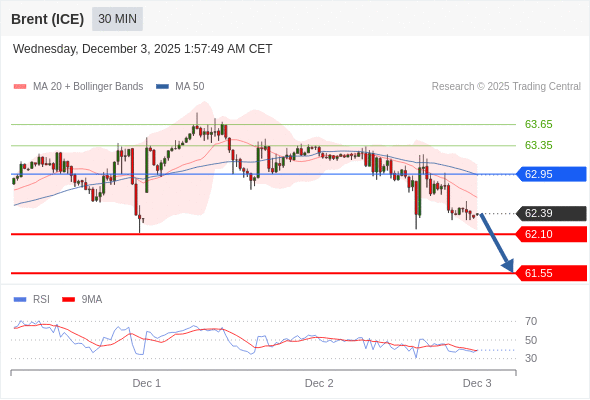 在 62.95 之下,看跌,目标价位为 62.10 ,然后为 61.55 。